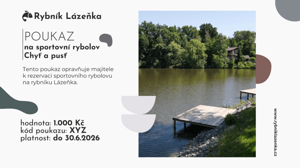 na Rybníku Lázeňka. Ideální dárek pro rybáře i nadšence do přírody – klid, pohoda a nezapomenutelné chvíle u vody.